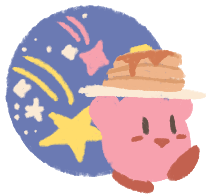 Kirby Pancakes: This spot illustration is an example of a character-focused piece. Some decorative elements are allowed, but the background remains transparent. Artwork by Mod Kathy.